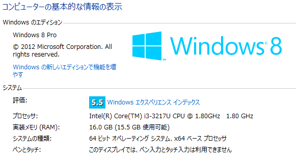 - Win8 pro (メディアは以前にアップグレード用DLしたときにUSBメモリーで作成済み)