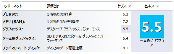 マシンの情報とエクスペリエンスインデックスはこんな感じ:
